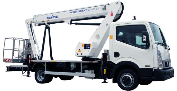 Die Arbeitsbühnen der Baureihe Scorpion sind auf 3,5 t LKW aufgebaut. Die Teleskoparme haben eine max. Arbeitshöhe von 23 m bei einer max. Reichweite von 13 m.